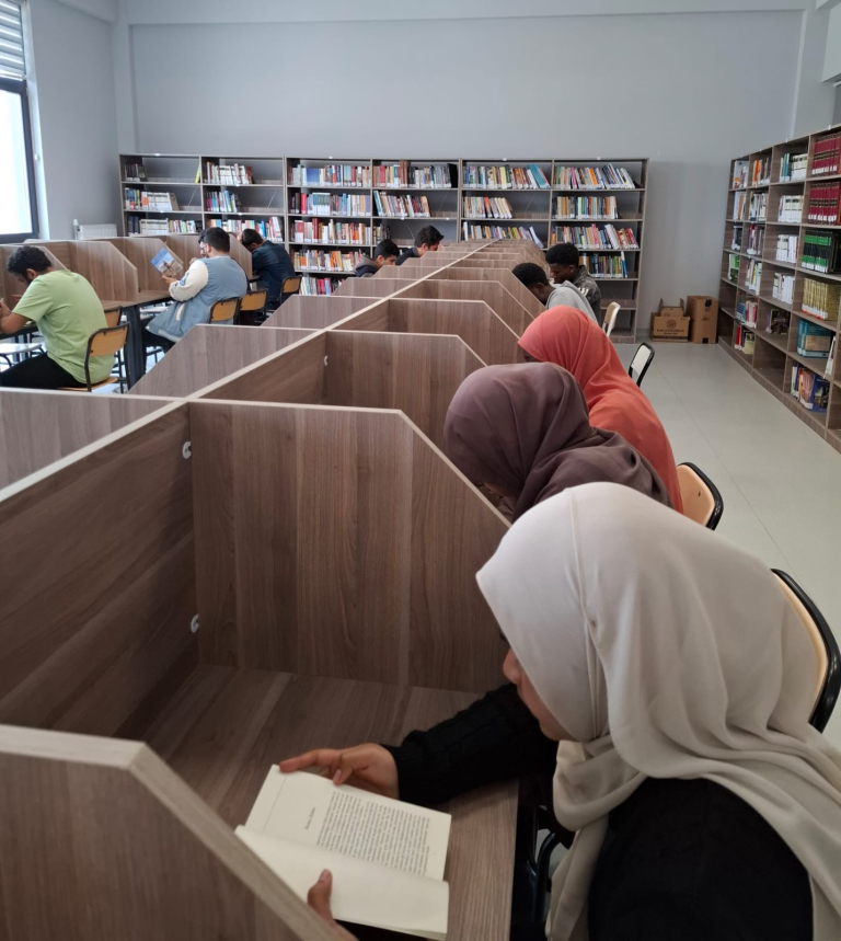 Öğrencilerimiz artık üniversitemizin zengin içerikli kütüphanesinden kitap almayı, okuma alışkanlığı kazanmayı ve Türkçe kaynaklardan faydalanmayı öğreniyorlar. Kütüphaneden kitap alma süreci, hem Türkçelerini geliştirmeleri hem de akademik ortama daha iyi uyum sağlamaları için büyük bir fırsat sunuyor.